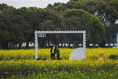 4月3日,游客在嘉兴市秀洲区王店镇镇中村的“青青乐地”农耕文化园内游玩。