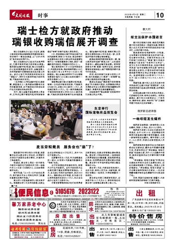 瑞士检方就政府推动 瑞银收购瑞信展开调查