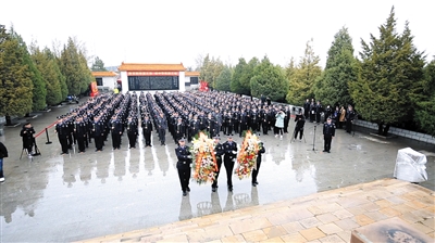 本报讯 (记者 尚铁军) 4月4日上午,市公安局350余名民辅警代表在大同市革命烈士陵园组织开展祭奠活动,深切缅怀英勇献身的公安英烈。