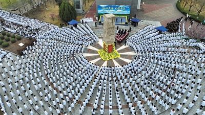 ▲4月4日拍摄的宁夏医科大学向遗体捐献者致敬仪式现场(无人机拍摄)。