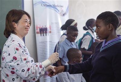 当日,第15批中国援纳米比亚医疗队队员在伊曼纽尔·谢菲迪中学为50多名学生带来一堂别开生面的中文课。他们用针灸、火罐作教具,以传统中医文化为内容,让同学们在寓教于乐的沉浸式体验中学习中文。