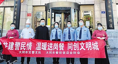 此外,2022年,协会不仅继续开展“警民共建餐饮文明街区”活动,打造常态化的“文明、和谐、有序、畅通”的饭店门前停车环境,还一如既往地在节假日期间组织开展了“共建警民情、温暖送岗餐”活动,为建设文明大同做出积极努力。