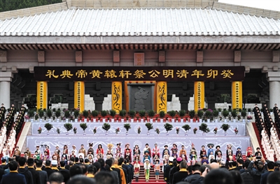 4月5日,演员在公祭轩辕黄帝典礼上演唱歌曲《黄帝颂》。