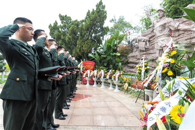 4月4日,第73集团军某旅组织官兵赴厦门鼓浪屿英雄山革命烈士陵园祭奠先烈。