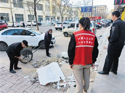 活动中,民悦社区工作者与综合行政执法队逐路逐段、逐门逐户对辖区内沿街经营场所进行走访排查,对沿街商户店外经营、占道经营、乱摆乱放等问题进行清理整治。同时,工作人员耐心细致地为沿街商户讲解“门前五包”的意义和重要性,引导商户自觉落实责任制要求,以主人翁的姿态积极参与到维护良好市容秩序和城市环境的行动中来,争当守法、诚信、文明经营者。