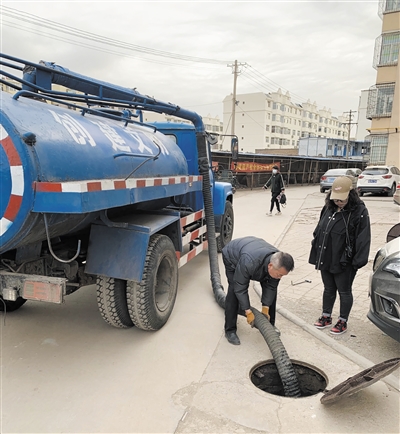 本报讯 (记者 段雨萌)近日,平城区迎宾街道明珠社区网格员在日常巡查时发现辖区振华南街甲66号楼下污水井堵塞,及时联系环卫部门予以处置,赢得居民好评。