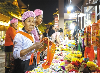 华灯初上,位于云南省德宏傣族景颇族自治州芒市的傣族古镇逐渐热闹起来。作为2022年国家文化和旅游部确定的第二批国家级夜间文化和旅游消费集聚区之一,这里极具特色的少数民族建筑、服饰、舞蹈、美食吸引着人们流连忘返。