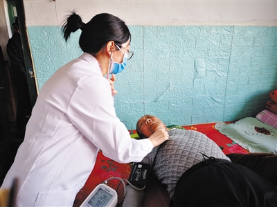 11日下午,阳高县罗文皂镇许家园村村民委员会的几间房里围满了前来看病的村民,他们针对各自的病症寻找相应的科室医生。前来义诊的市三医院大夫也分成两组,一组现场坐诊,一组入户为困难群众提供医疗帮助。“我是肺心病,不能出门,老伴儿身体也不太好,有高血压、糖尿病,听说今天有义诊,老伴儿也想去看看,但又不放心我,没想到下午就上门给我们看病、做检查,真是辛苦你们了,谢谢……”家住阳高县罗文皂镇许家园村的77岁杨顶握着大夫手不住地道谢。
