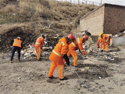 “这些基本是周围居民倾倒的生活垃圾。眼看天气转暖,这些垃圾如果得不到及时清理,会严重影响周边环境。”平城区环卫服务中心清运二公司环卫工田柱一边清理垃圾,一边向记者介绍。记者注意到,北都丽园小区南侧的铁道桥周围有很多平房住户,因为环境卫生管理维护不到位,导致积存了大量垃圾,环卫工曾多次清理但没过几天就又被堆上了垃圾。昨日,环卫工人在完成日常保洁工作后,加班加点对此处垃圾进行清理,共清理清运垃圾10余吨。