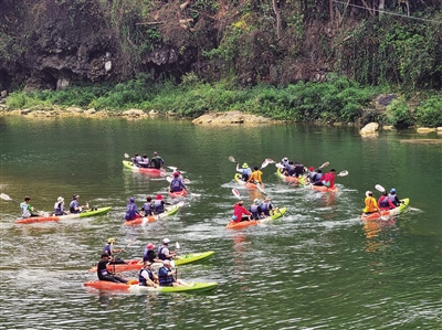 4月16日,游客在老挝万荣漂流。