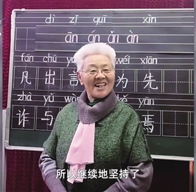 目前“拼音奶奶”仍如同在学校上课那般风雨无阻,甚至比上课时花费的精力还要多,“基本上一天两场,是全年无休的,大年三十我都会在直播间教大家。”现在,杨维云的课堂人数不多,但她仍然兢兢业业,不厌其烦地把每一个知识点讲到位,“教学就得认真嘛,都说少年强则国强,努力把祖国的花朵培养好。”