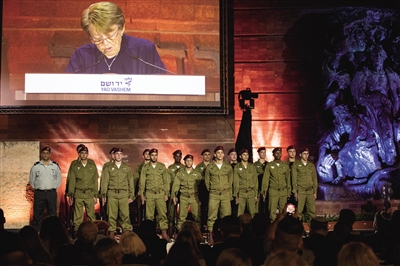 以色列17日晚在位于耶路撒冷赫茨尔山的亚德瓦希姆大屠杀纪念馆举行大屠杀纪念日活动,悼念第二次世界大战中的犹太死难者。