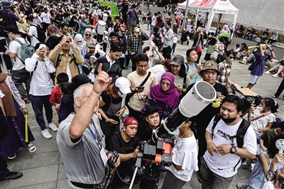 4月20日,人们在印度尼西亚雅加达观看日食。