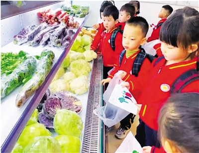 活动现场,在社区工作人员和老师的带领下,小朋友们来到超市,根据手里拿着的水果和蔬菜小卡片,开始辨认和寻找相对应的蔬果。“我找到了,茄子、红萝卜在这里呢!”“这个是榴莲……”小朋友们找到后开心地与大家分享。当有的小朋友还未找到时,社区工作人员通过耐心讲解,帮助幼儿了解生活常识,进一步认识各种蔬果的名称。小朋友们还通过摸一摸蔬菜的形状、说一说颜色、闻一闻气味、猜一猜食用的部位和生长环境,观察和发现各种蔬果里蕴含的丰富知识内容,了解到吃蔬菜水果的益处,体验到社会实践活动带来的乐趣。