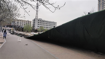 是日一早,柳女士向记者致电称,她送孩子上学途经锦兴街南侧便道时发现,前方的路被挡住了。多年前在东方罗马城小区的东北侧,有建筑单位搭建并围起长约50米、高约4米的钢管结构围墙,可能由于时间太久,再加上刮大风,部分围墙被刮倒在锦兴街南侧,将整个便道堵塞,行人经过存在安全隐患,希望有关部门尽快妥善处理。