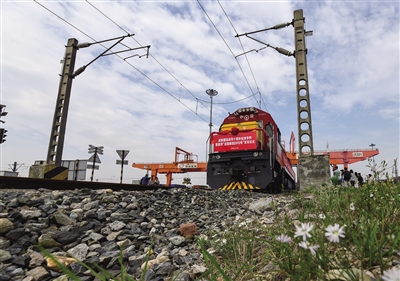 4月26日,“法国邮政DPD号”国际班列从成都国际铁路港驶出。