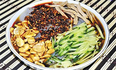 当然,大同凉粉中最为有名的还是浑源凉粉。浑源凉粉配料十分讲究,除醋、蒜水、葱花、黄瓜、香菜等外,还配有莲花豆、豆腐干和辣椒油等。而且,浑源凉粉的辣椒油是按独特配方制作成的,有清而不腻、辣而不涩、香而纯正的特点。浑源凉粉中有许多知名品牌,如恒宗凉粉、小媳妇凉粉、大喜凉粉、三合义凉粉等,浑源凉粉制作技艺还被列入山西省非物质文化遗产名录。