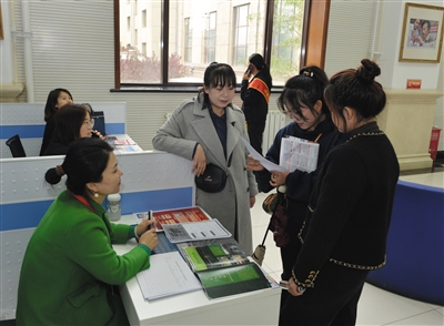 图为求职者详细了解用工企业信息。 本报记者 戎禹仁 摄