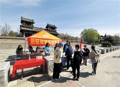 近日,平城区新旺街道柳港园东院社区联合柳港园西院、御河九号社区和解放经济公司、红旗经济公司,带领党员志愿者在明堂公园南门参与志愿服务活动,为市民及外地游客提供便利服务。 本报记者 杨翠叶
