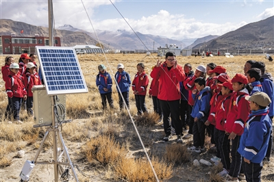 当日,西藏日喀则市定日县扎西宗乡完全小学的学生来到中国科学院珠穆朗玛大气与环境综合观测研究站(简称“珠峰站”),参加主题为“”的公众科学日活动。孩子们参观科学观测仪器,零距离感受“第二次青藏科考”,在重点实验室听了一堂生动的科学课。 本版文图据新华社