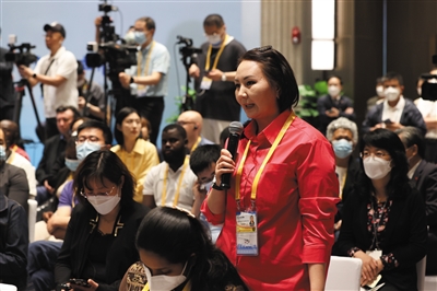 ▲5月16日,中国-中亚峰会新闻中心举行首场吹风会,邀请外交部欧亚司、文旅部国际交流与合作局、中国贸促会国际联络部有关负责人介绍峰会情况并回答记者提问。这是记者在现场提问。