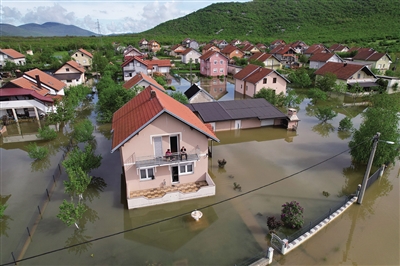 这是5月15日在克罗地亚格拉查茨拍摄的浸泡在洪水中的房屋。