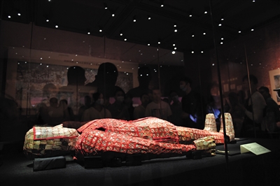 5月18日,观众在长沙博物馆参观展品丝缕玉衣。