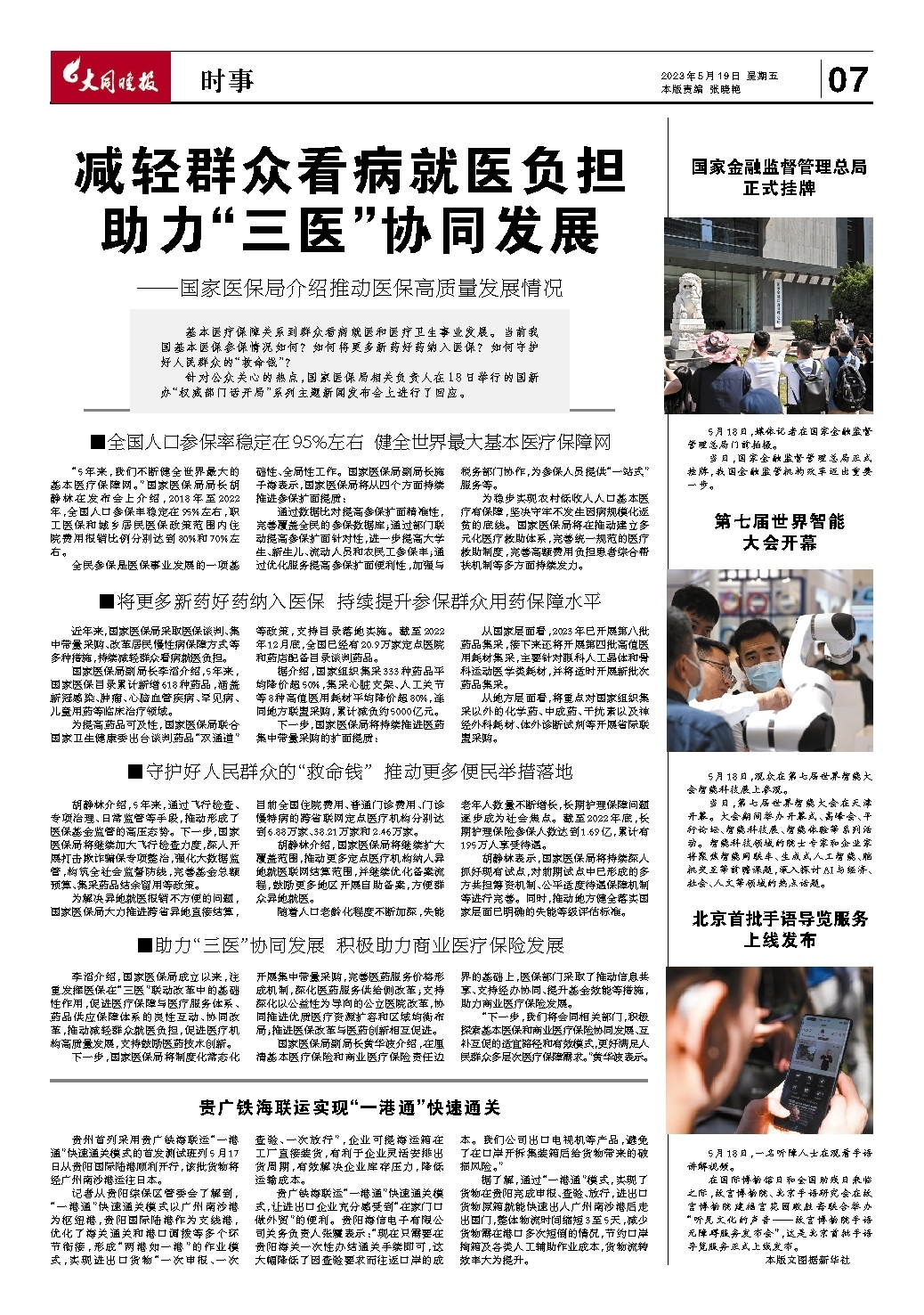 减轻群众看病就医负担 助力“三医”协同发展