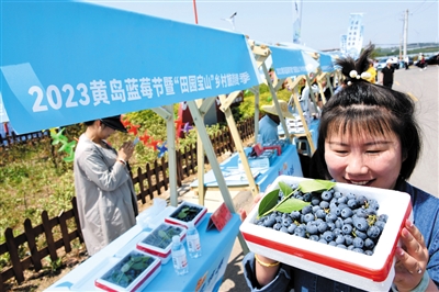 5月19日,游客在宝山镇“蓝莓节”上选购蓝莓。