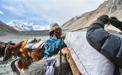 珠峰山区特殊的自然环境,使得牦牛驮运成为珠峰登山、科考和探险等活动中运输物资最主要的方式。应运而生的牦牛工,成为扎西宗乡壮年劳动力在每年登山季里的固定工作。