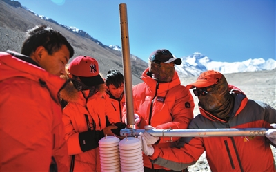▲在珠峰登山大本营附近,科考登顶队员学习如何架设自动气象站(5月9日摄)。