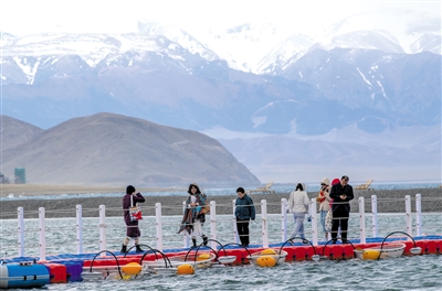 ◀ 5月21日,游客在新疆赛里木湖景区观光。
