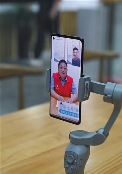 5月23日,在长兴县画溪街道姚家桥村廉心工作室,村级监察工作联络站站长黄凤斌现场连线,听取村民关于全域土地整治新村安置点规划的建议。