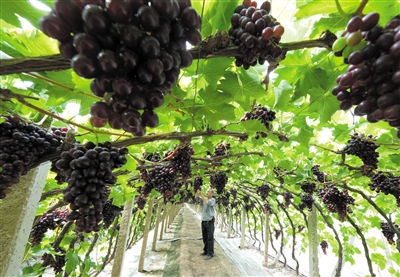 近日,河北省唐山市海港经济开发区葡萄种植特色小镇——王滩镇的大棚葡萄陆续成熟。近年来,唐山市海港经济开发区引导农民采取“合作社+基地+农户”的模式,发展冷棚、温室大棚等葡萄种植,延长葡萄供应期,促进农民增收,助力乡村振兴。目前该区葡萄种植面积达1.1万亩,年产葡萄2.5万吨。