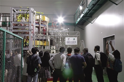5月29日,在泰国中部那空那育府,第八届东盟等离子与核聚变培训学员参观中国科学院等离子体物理研究所赠送泰国的托卡马克实验装置TT-1。