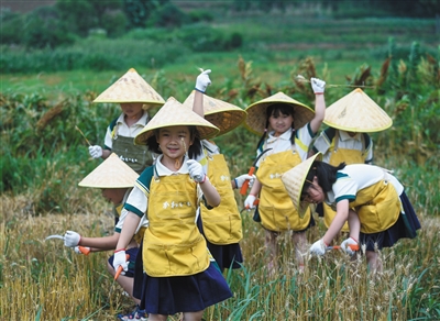 6月5日,芒种节气来临前,浙江省湖州市仁北幼儿园的孩子们在家长和老师的带领下来到道场乡格林农庄开展校园精细化特色课程——芒种田野实践活动。孩子们在田野里收获小麦和插秧,感受收获与耕种的忙碌,这也属于“阅读、运动、劳动”精细化特色课程的重要组成部分。