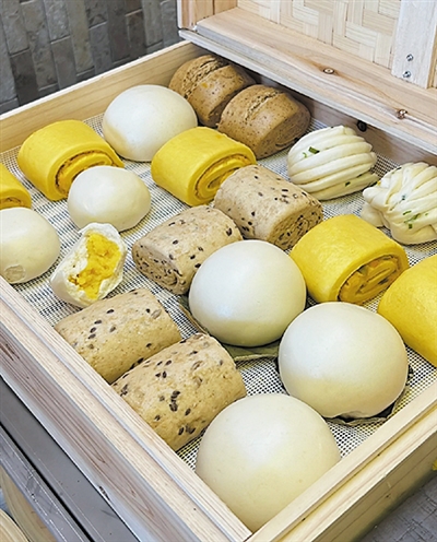 记者在采访中了解到,该店的产品在工艺方面均采用自然发酵、手工揉制、笼屉蒸发,以保证产品最传统的味道。主食种类很丰富,咸口、甜口的都有。喜欢甜口的可以选择柠檬奶黄包、红红馒头、老奶奶馒头,特别是老奶奶馒头,用老面和牛奶制作,味道纯正。喜欢咸口的可以尝试一下葱油花卷,自制的葱油,葱香浓郁。另外,喜欢吃粗粮的则可以选择金瓜瓜馒头和麦麦馒头,清甜可口。 (孟维鹏)