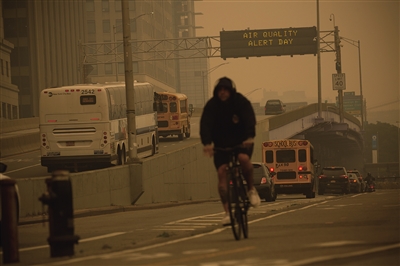 纽约州长凯茜·霍楚尔说,该州部分地区的空气污染指数达到正常水平的8倍,已经构成“紧急危机”。