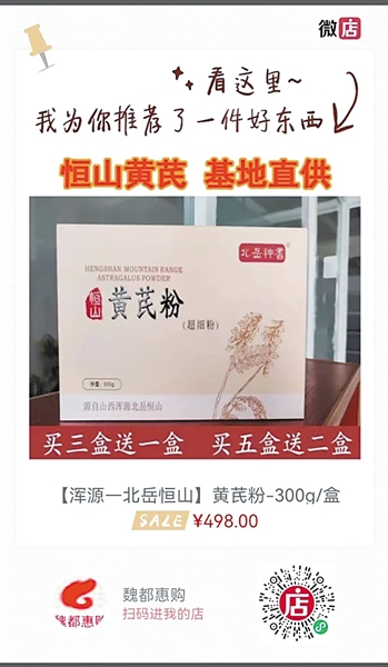 北岳神耆黄芪粉已正式登陆“魏都惠购”平台,长按识别上方二维码,进入魏都惠购微店产品链接,即可购买正宗恒山黄芪粉。