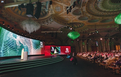 ◀ 这是6月11日在沙特阿拉伯利雅得拍摄的中阿合作论坛第十届企业家大会开幕式现场。