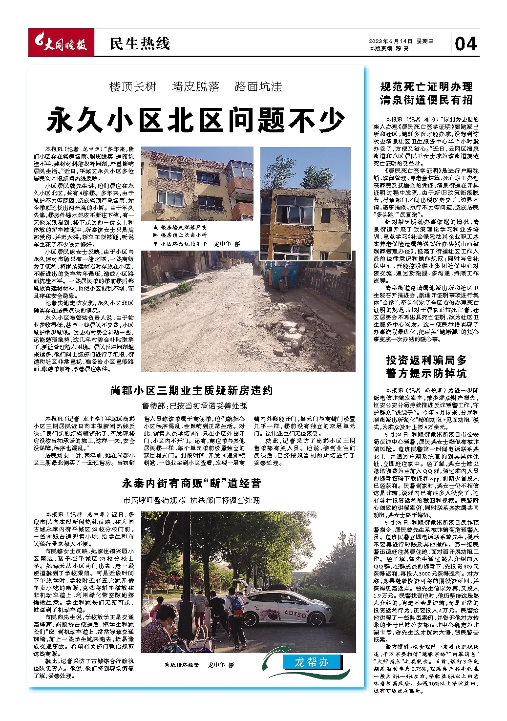 楼顶长树 墙皮脱落 路面坑洼~~~