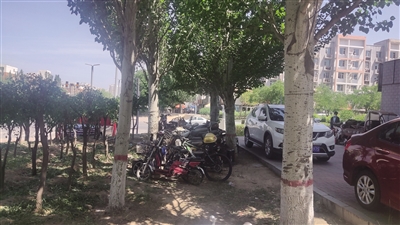 据任先生讲,前几天,他到小区外西侧一家单位办事,发现很多车辆停放在绿化带,由于经常遭受碾压,除了一些大树外,绿化带已经看不见草坪,地上都是光秃秃的。他还发现有人在绿化带堆积杂物,有的饭店在门前摆放饭桌时甚至摆进了绿化带。