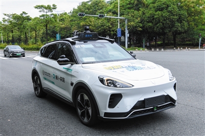 萝卜快跑无人驾驶车辆行驶在深圳市坪山区的道路上(6月15日摄)。