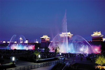 17日20时30分许,永泰门广场音乐喷泉改造归来,如约盛放。随着《幸福大同》悦耳的旋律,两座喷泉主池里一条条绚丽的“水龙”上下翻转,在五彩波光和射灯的映照下璀璨夺目。