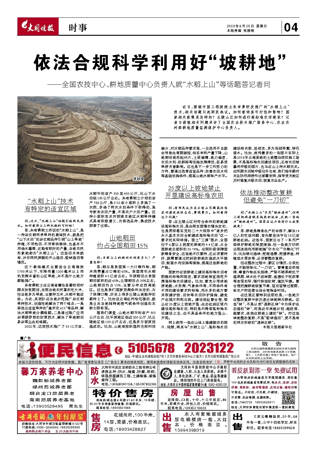 ~~~——全国农技中心、耕地质量中心负责人就“水稻上山”等话题答记者问
