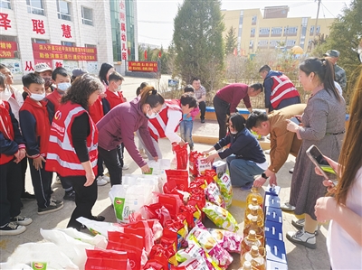 10时许,志愿者们又来到新荣区第一小学校门口,与我市一家爱心企业的志愿者一起对该校开展慰问活动,将价值1万余元的米面油卸下来捐助给校方,用以改善住宿学生的生活。