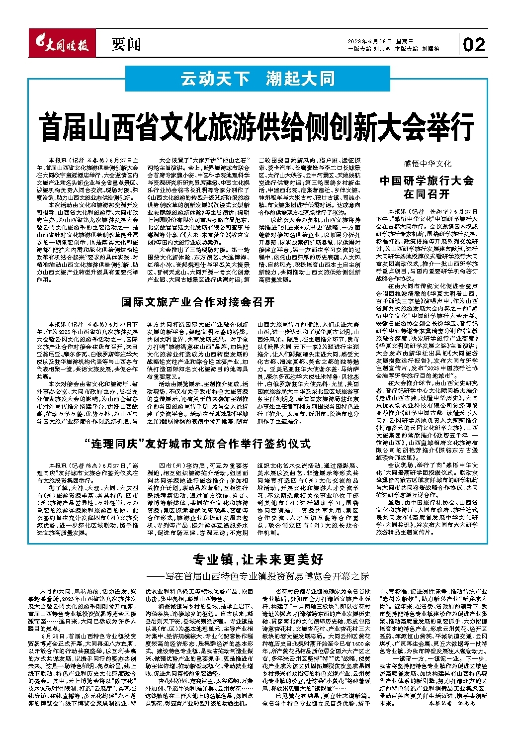 ~~~——写在首届山西特色专业镇投资贸易博览会开幕之际