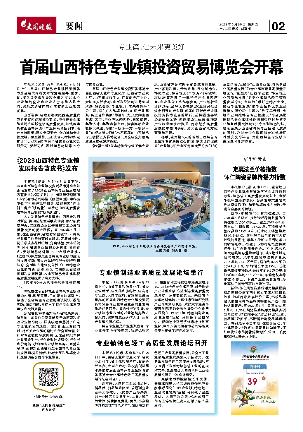 《2023山西特色专业镇发展报告蓝皮书》发布