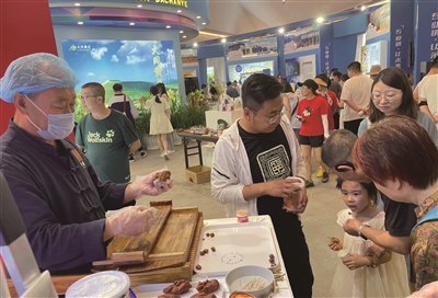 除了琳琅满目的黄花产品,现场制作的广盛源传统大蜜丸、清香醇厚的黄芪茶、沙棘汁、“阳高红”西红柿……以“融入京津冀 打造桥头堡”为主题,“大同蓝”为主色调的展厅内,“吃喝玩乐”元素俱全,令人眼前一亮,大同特色凭实力“圈粉”。