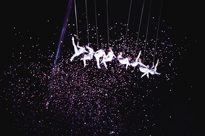 7月5日,舞蹈演员在西班牙马德里“城市之夏”艺术节上表演“空中芭蕾”。